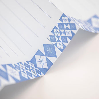 蛇腹便箋を榛原千代紙柄のつづり箱に納めました。文箱としてペンや切手と一緒に収納し、思い付いたときにいつでもお便りを。