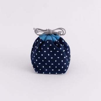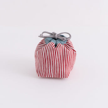 ころんとした形がかわいらしい、手のりサイズの巾着袋です。