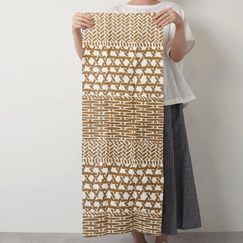 たて糸を綿、よこ糸を麻で織った綿麻生地のてぬぐいです。綿麻てぬぐいは丈夫で吸水性がよく、乾きやすいのが特徴です。張りのあるさらりとした手触りでインテリアにも馴染みやすく、掛ける・敷く・拭くなど様々な用途でお使いいただけます。