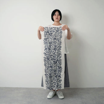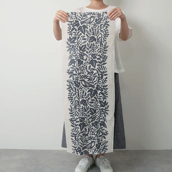 たて糸を綿、よこ糸を麻で織った綿麻生地のてぬぐいです。綿麻てぬぐいは丈夫で吸水性がよく、乾きやすいのが特徴です。張りのあるさらりとした手触りでインテリアにも馴染みやすく、掛ける・敷く・拭くなど様々な用途でお使いいただけます。