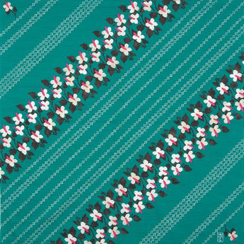 広げた時には斜め方向にどくだみが連なっていますが、包んだ時にどくだみの花が正面を向くように構成しているため、包むものによって変化を楽しんでいただけます。