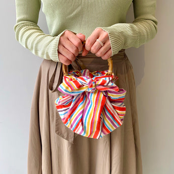 風呂敷バッグ 70cm リング付 | しましま柄 モダンガール|オーガニックコットン|むす美
