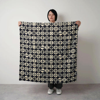 伊砂文様研究所が創作した伝統的な吉文様を、ふろしき専門ブランド「むす美」が現代的なサイズ・構図・展開でアレンジ。 京都の職人による「両面染め」技術を用い、結んだ際に表裏どちらも美しく映える細部まで計算された高品質なふろしきです。