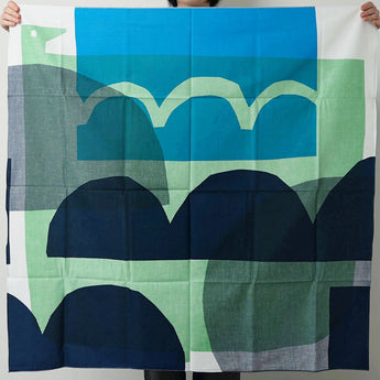 風呂敷 100cm|WATER BIRD / グリーンネイビー|鈴木マサル - ダブルフェイス|オーガニックコットン|むす美