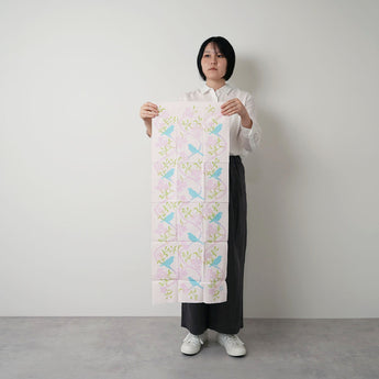 やわらかなピンクのグラデーションに、小鳥と桜が織りなす愛らしいシルエット。見るたびに春の温かさとともに、心穏やかな気持ちが訪れます。