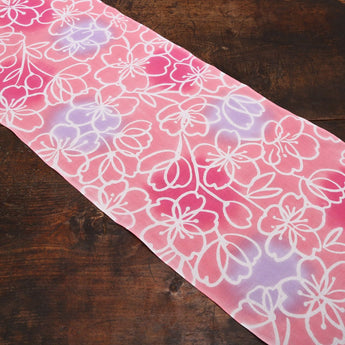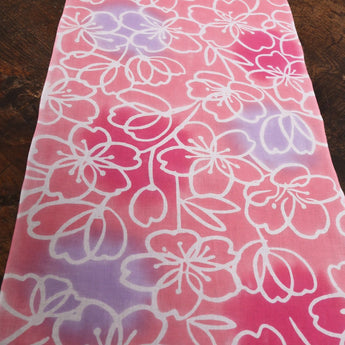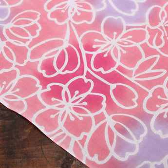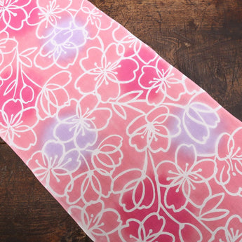 ゆったりとした大きめの桜柄を、注染独特の“ぼかし”技法で柔らかく描いた華やかなデザイン。
