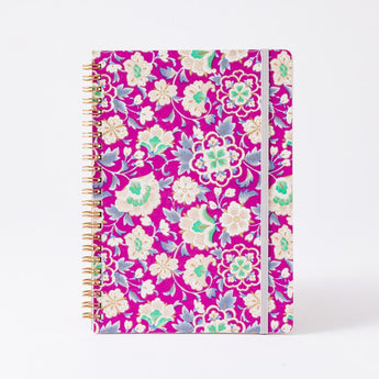 表紙に植物の柄をモチーフにした、色鮮やかな友禅紙を使用したリングノート。