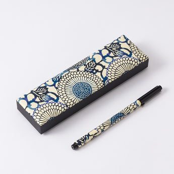 筆ペンは、筆官(軸)を京友禅紙で包んでいます。手づくり本格派毛筆の書き味と、華やかでPOPな筆ペンをお楽しみください。