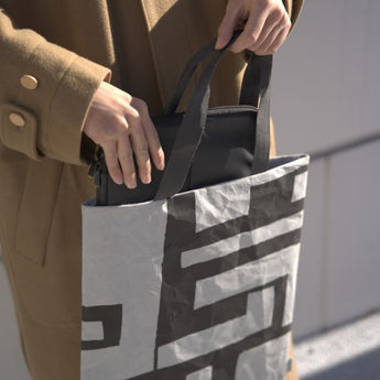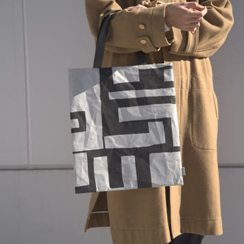 日本の和紙ブランド「SIWA」の紙に、染色家「柚木沙弥郎」が型染めデザインしたトートバッグ。