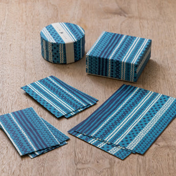 高品質な美濃和紙にシルク印刷で表現されたKASURI SHIMA柄は、自然と心がほどけるようなやさしい色合い。