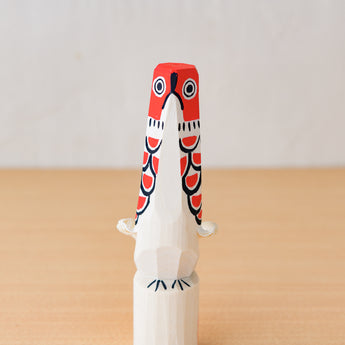 笹野一刀彫の代表的な作品といえば、「にわとり」「せきれい」「お鷹(たか)ぽっぽ」。