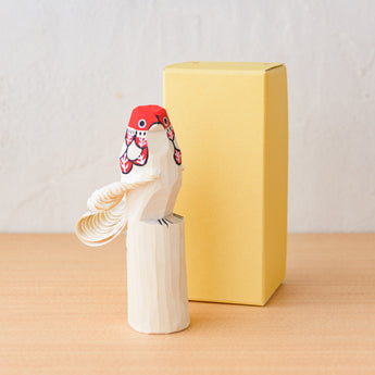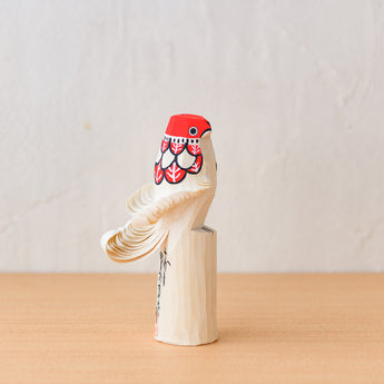 笹野一刀彫の代表的な作品といえば、「にわとり」「せきれい」「お鷹(たか)ぽっぽ」。