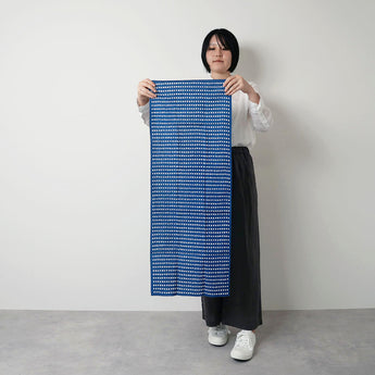 シンプルでありながら飽きのこない普及的な美しさを持つ豆絞り柄を、伝統技法「注染(ちゅうせん)」で一枚一枚丁寧に染め上げています。