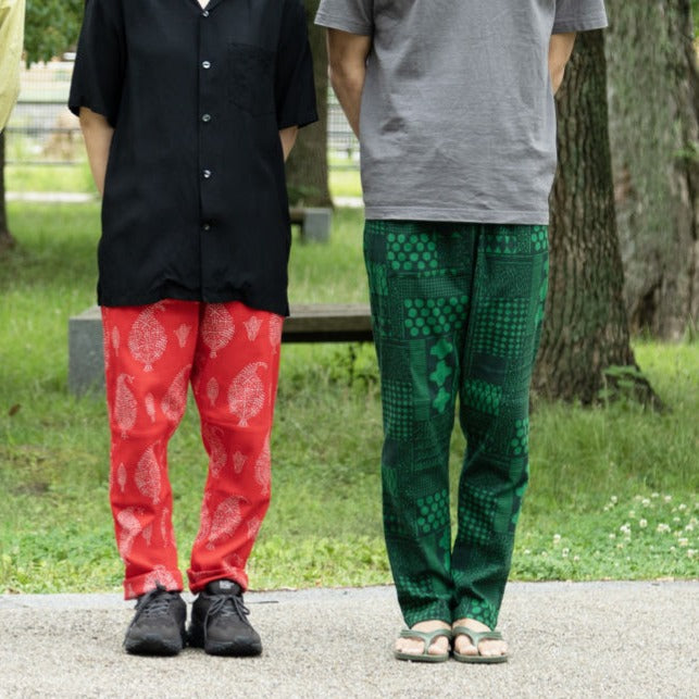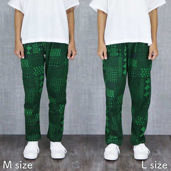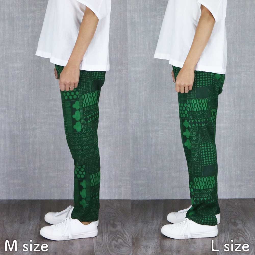 【ボトムス】手捺染 もんぺ よつめデザイン 花布 高島ちぢみ M L うなぎの寝床