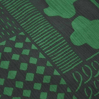 大分・国東にある「よつめ染布舎」の型染デザインを、京都・伏見の馬場染工場の手捺染(てなっせん)で丁寧に表現したコラボレーションモデルです。