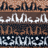 The technique used is "hand printing/silk screen". A mold is made for each color, and a large spatula called a squeegee is used to imprint the dye onto the fabric, carefully layering each color one by one.