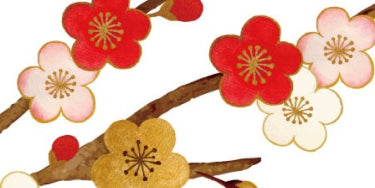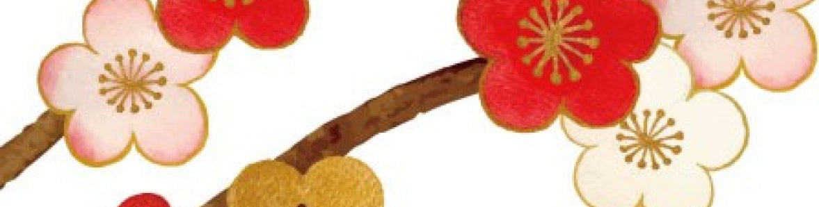 寒風吹きすさぶ中に凛と咲き誇る可憐な花。ほのかな甘い香りとともに、いち早く春の訪れを告げます。しんと静まり返った冬景色の、赤、ピンク、白のあざやかな彩りは、生命の息吹さえ感じさせてくれます。日本最古の歌集『万葉集』には「梅」をテーマにした歌が多く残されており、古来より人々を魅了してきました。梅にちなんだ縁起物と言えば、元旦に飲む梅干しと昆布を入れたお茶「大福茶」。その起源は、平安時代中期に村上天皇が病気のときに飲み、回復したこと。1年の無病息災を願いながら飲むようにになりました。