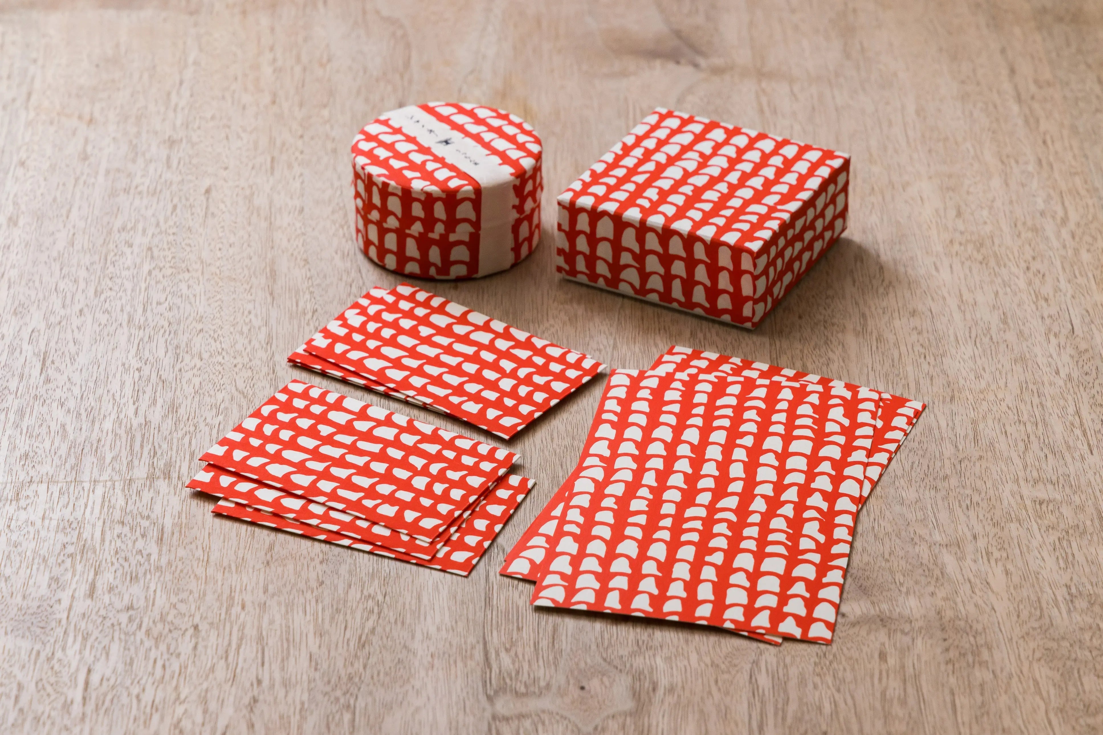 以高品質美濃和紙用絲印表現的赤瓦紋,是靜靜感受島上細緻光影豐富感的設計。
