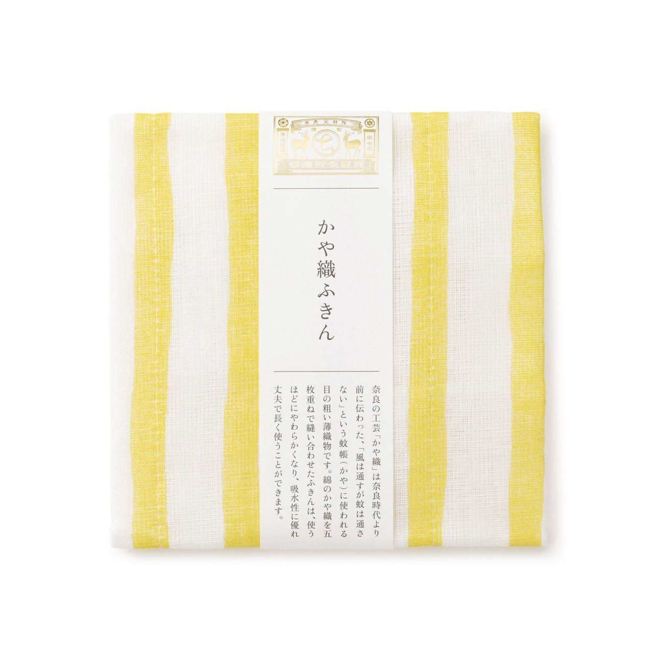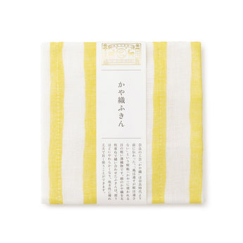 かや織ふきん | 手描きの風合いのよろけ縞 黄 | 絹100% かや織5枚重ね | 中川政七商店