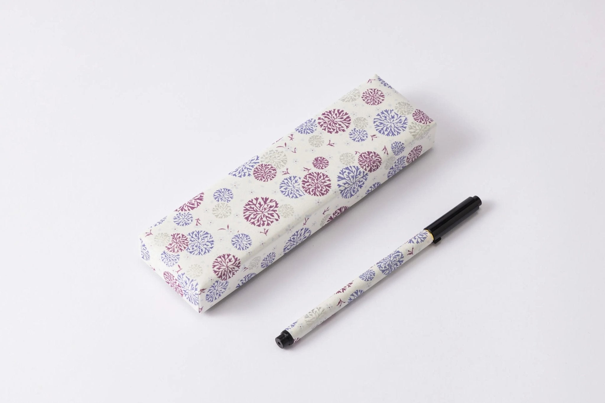筆筆套是用京友禪和紙包裹筆桿(軸)。請享受手感紮實的正統毛筆書寫風味,以及華麗又POP的筆筆套。