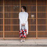 교토 장인이 조심스럽게 마무리 한 손으로 염색 한 직물로 만든 수직 토트 백. 그것은 당신의 일상 생활에 일본어 색상을 더하고 훌륭한 선물입니다.