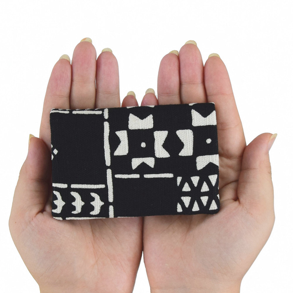 お米のような楕円、三角、線、点々...いくつもの形を組み合わせた模様が、名刺入れという小さなキャンバスいっぱいに広がります。布の取り方によって印象が変わるので、同じ柄でも商品ごとに個性あふれる表情が楽しめます。