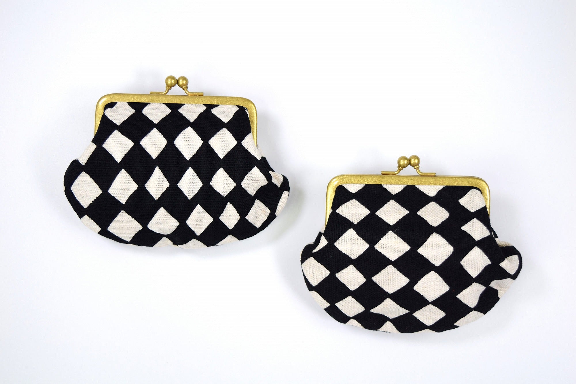 四目染布口金包 SASHIKO 刺繡 黑色※因裁切位置不同,圖案會有所差異,無法指定圖案位置,敬請見諒。