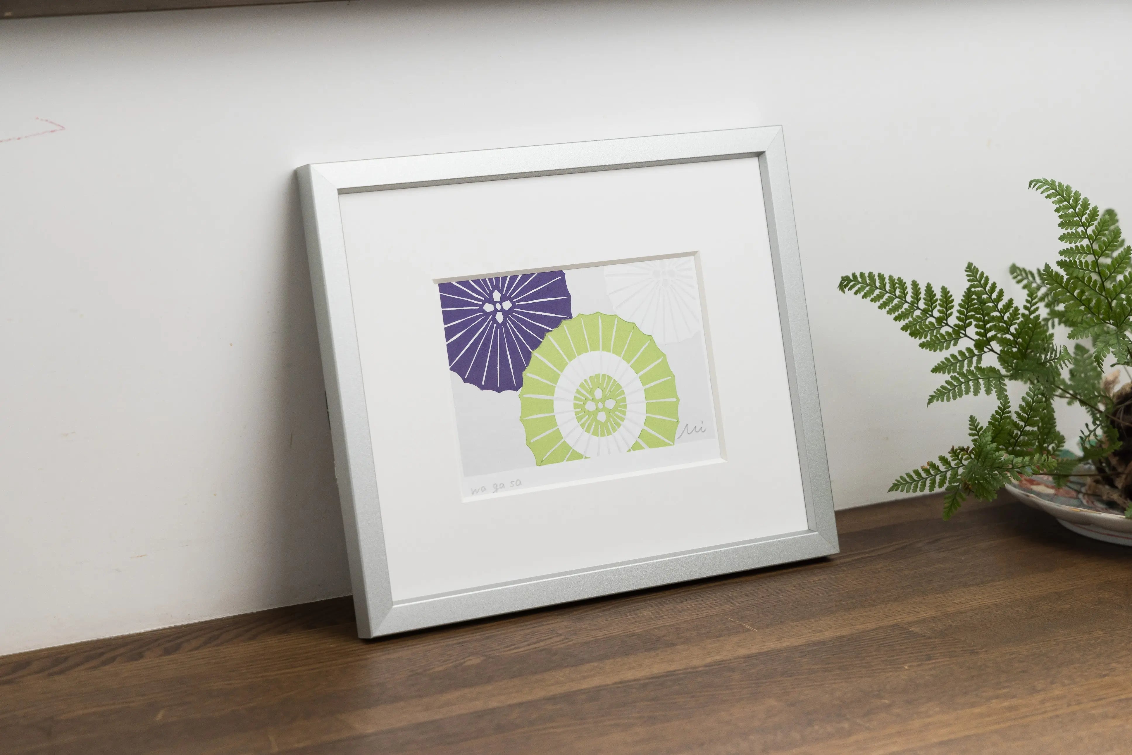 手繪木版畫 | 京都時間 和傘 | 加藤光穗 作 | 京都 藝術展 | 竹籠堂